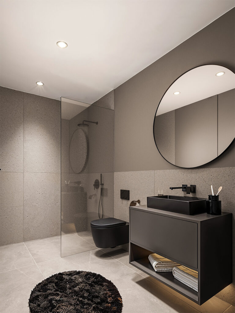 Die Wohnungen verfügen über hochwertige Einbauküchen mit Granitabdeckung und modernen Markengeräten. Die Bäder sind mit schwellenlosen Duschen, Glasabtrennungen und qualitativ hochwertigen Armaturen ausgestattet. Wohnungen mit Gartensitzplatz erhalten einen separaten Wasseranschluss.